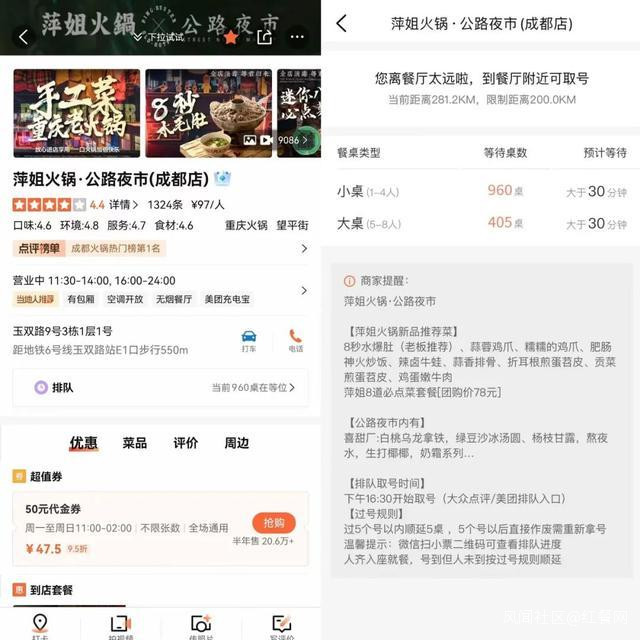 在相隔不遠的成都太古裏商圈,同樣是這家火鍋店,在疫情解封后不到一週就迅速恢復排隊盛況。解封兩週後,週末高峯期排隊桌數就超過1300+。