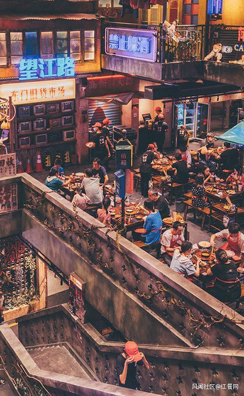 重慶潮流商圈觀音橋,餐飲品牌旗艦店的必爭之地,一家閃爍着霓虹招牌的火鍋店正成為潮人們爭相打卡的地方,日均排隊桌數600+。