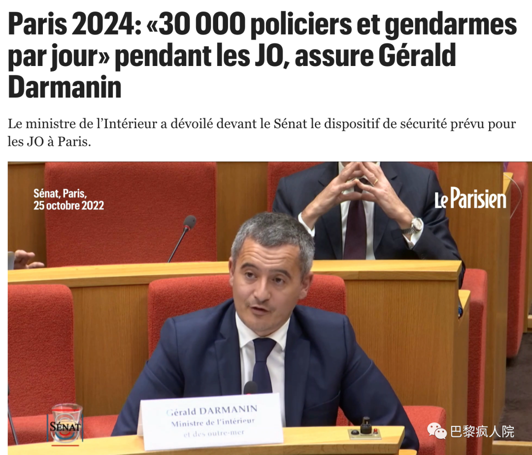 前兩天看新聞裏説,內政部長在參議院正式公佈了2024巴黎奧運會安保計劃,驚呆了所有人,可以説是: