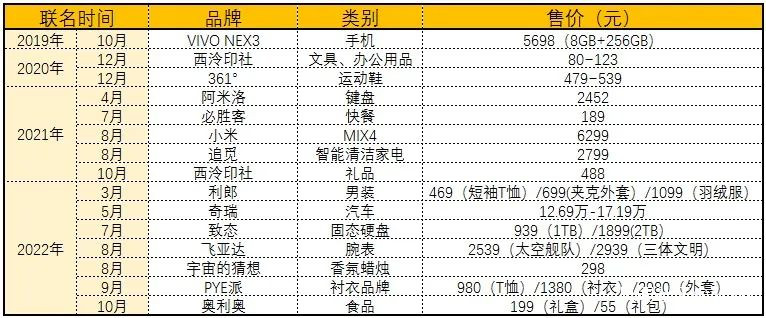 較早的商業聯名合作,是2019年10月VIVO NEX3 5G推出的500套限量禮盒,附贈《三體》手機殼、銅版書籤和定製筆記本。