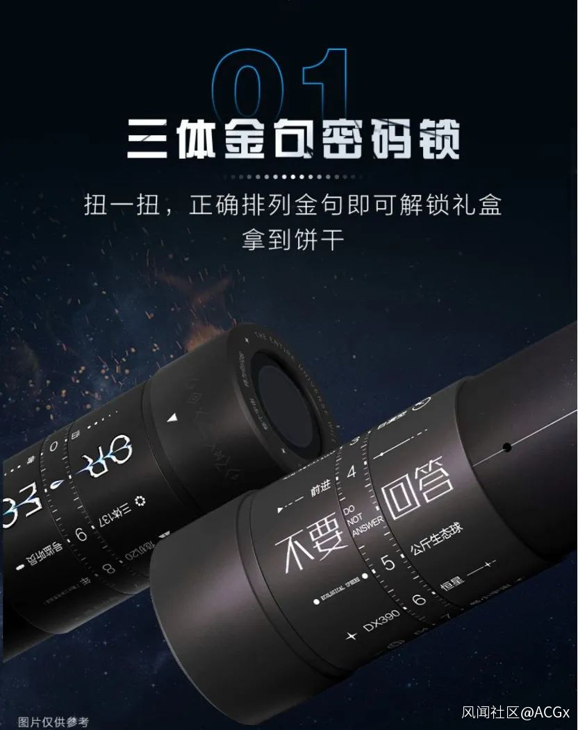 比如奧利奧與《三體》聯名推出的禮盒,包括“炫目深淵鏡”“朝酷投影”和“三體金句密碼鎖”,看得出來在設計方面是頗費心思。和《三體》有最直接關聯是“金句密碼”這一項,而將《三體》各個關鍵詞印在餅乾上進行銷售,成為了這次聯動商品銷量提升的直接手段。