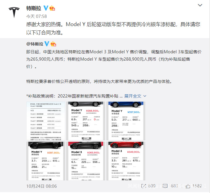 特斯拉中國宣佈,Model Y後輪驅動版車型不再提供冷光銀車漆標配,選配需花費8000元。目前Model Y提供五種車身配色,包括純黑、冷光銀、珍珠白、深海藍、中國紅,除了純黑外,其它四種顏色均需加價8000元選配。