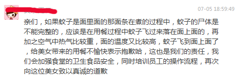 針對一些投訴,比如“有蚊子惡意躺在麪條裏”,食堂工作人員也會及時做出“專業”解釋——