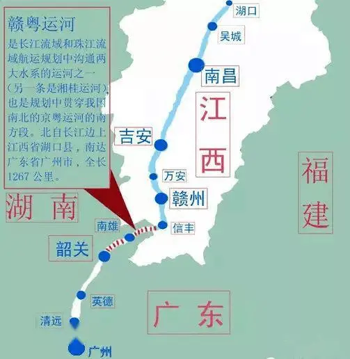如今,贛州又迎來了三大超級交通項目。除了本文開頭所説的瑞金機場外,還有剛剛獲批的長贛高鐵,以及“百年大計”贛粵大運河。