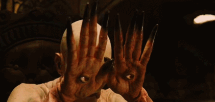 最經典的以手為眼的白皮怪,坐擁山珍海味——恰似鏡頭切換中的西班牙暴權階級一樣。