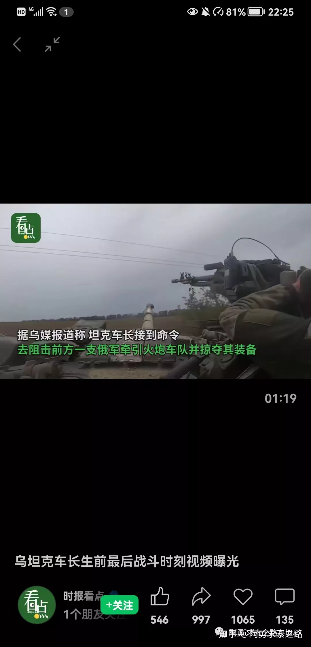 這個烏軍自己拍攝的視頻反映出烏軍的戰鬥力並不強。烏軍坦克部隊奉命即攔截俄軍的牽引火炮車隊,坦克打汽車是絕對沒有問題的,結果他居然是跟俄軍的炮兵部隊進行炮戰,而不是直接衝上去。最後烏軍坦克炮彈打光了以後,居然還要後撤,而不是撞擊俄軍牽引火炮的車輛。反而是俄軍牽引火炮的車輛衝上來從他旁邊掠過,最後,烏軍坦克車長反而被俄軍步兵開槍打死,會明白坦克上的機槍怎麼不掃射衝到坦克面前的俄軍士兵,搞笑吧。目前伊朗俄羅斯在國際市場淘買了數以萬計的廉價摩托發動機等無人機配件,一架無人機大概成本就7000美元,所以,一旦需要,可以遮天蔽地的發起攻擊。還記得海馬斯嗎?現在俄軍的無人機是追着海馬斯打。腦補一下,冬季來臨,大地冰凍的時候,天上成千上萬架無人機,地上成千上萬的坦克裝甲車,從多個方向,比如説包括白俄羅斯,向烏克蘭發起攻擊,是什麼場景?