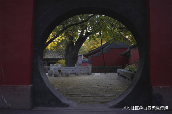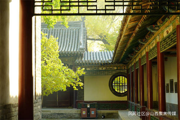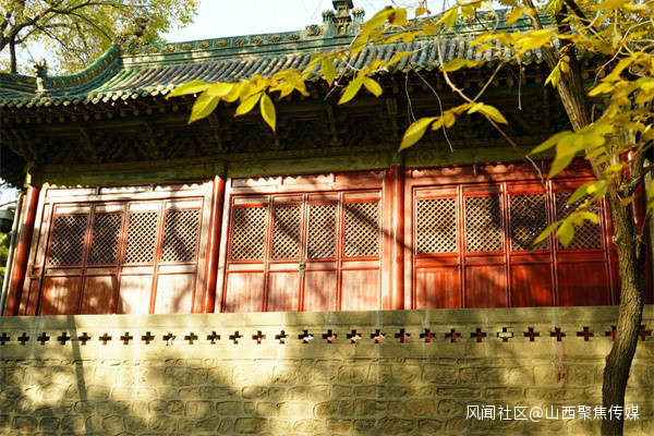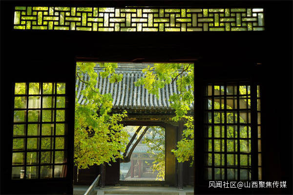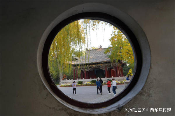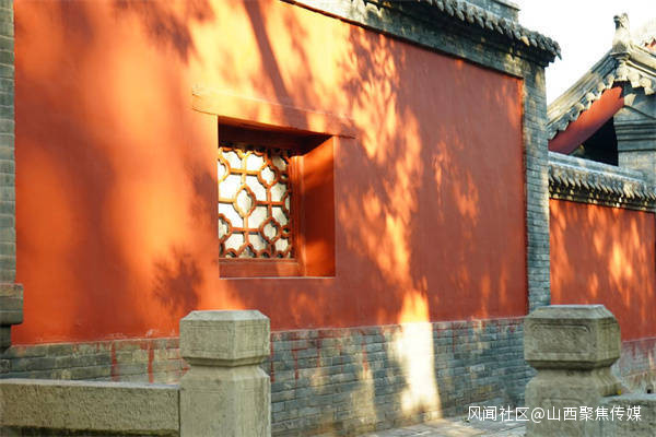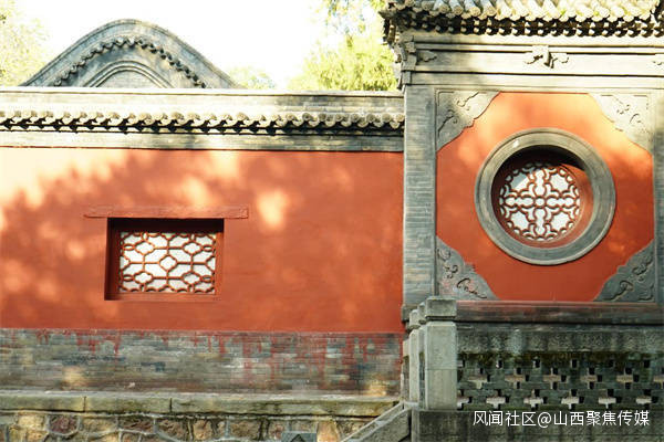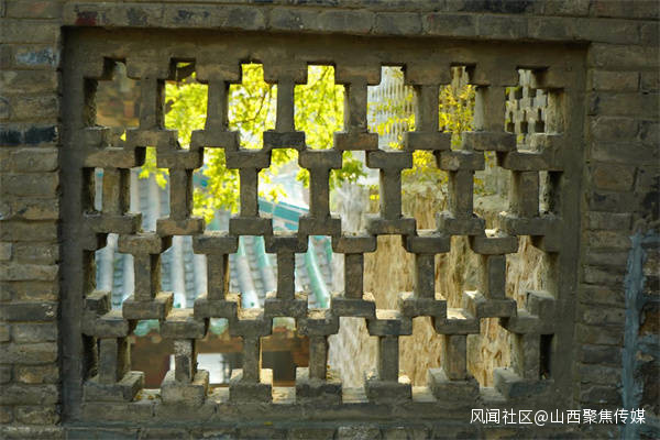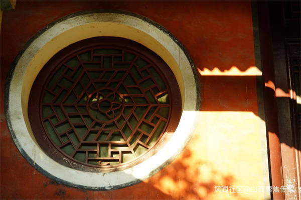 花窗,是在窗洞的基礎上鏤空圖案的窗。花窗常見於園林的各種牆垣上或者長廊中,通過花窗看到的美景通常有一種朦朧美和柔和感。在唐叔虞祠和文昌宮的外牆垣上有方形和圓形的花窗,這種花窗在比較大的院子中可以增加院子的通透性和觀賞性。而且在不同角度的光線照射下,花窗上本身的花紋圖案,也會產生富有變化的光影,這是一種刻在窗户的祝福,一條來自古代的寄語。