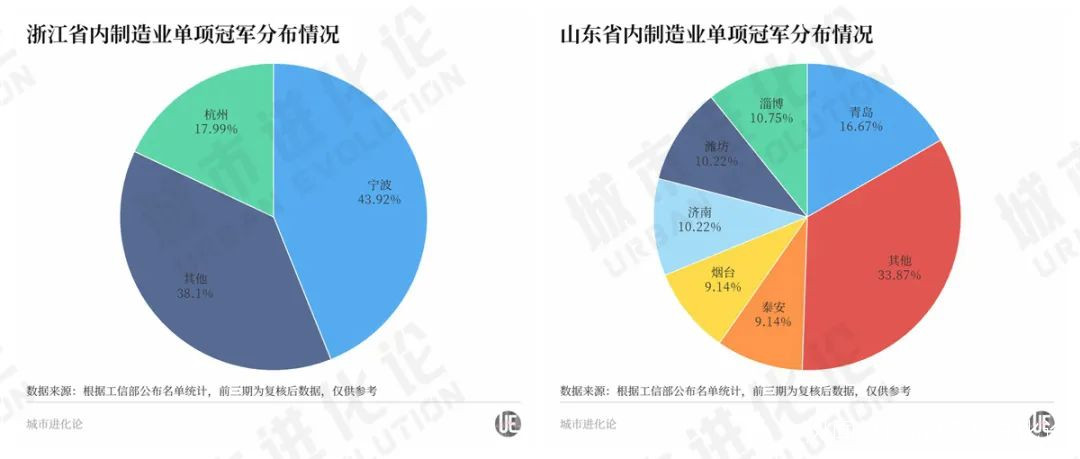 與之相比,山東則更需要持續強化核心城市的引領能力。“十四五”期間,浙江和山東誰能夠率先完成單項冠軍之省的升級,乃至釋放單項冠軍對產業集羣的帶動潛力,是“制霸”製造業塔尖的關鍵。