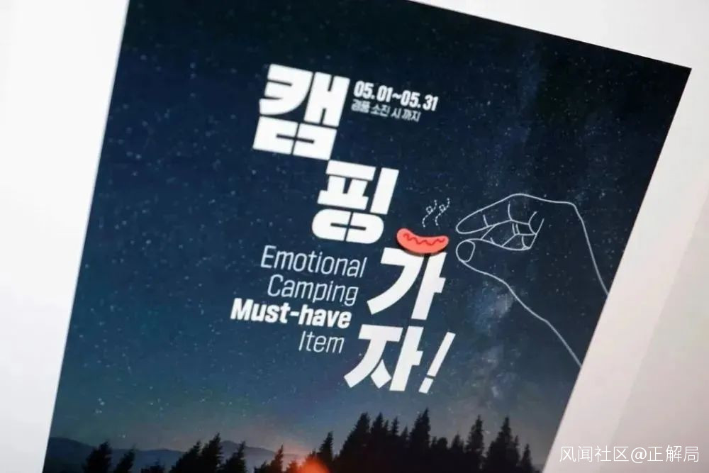 2021年8月,韓國最大的連鎖便利店GS25發佈了一條廣告。廣告上有一隻手作出捏的姿勢,以突出自家的野營主打產品——香腸。