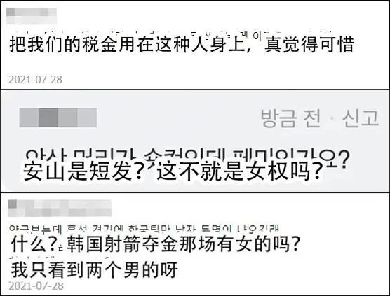 很多韓國男網民指責,安山剪短髮就是個“女權主義者”,不配拿金牌。
