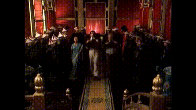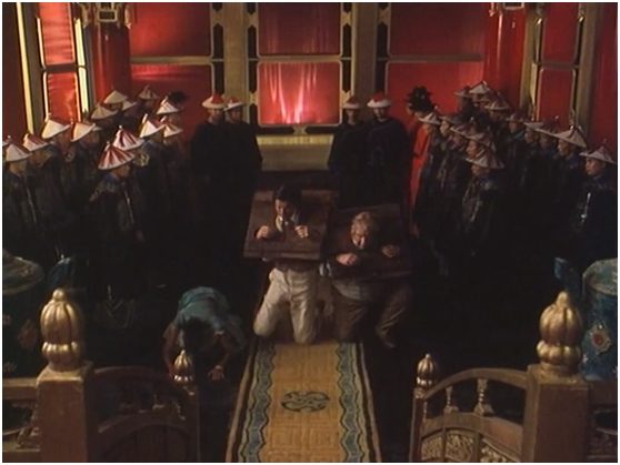 那種顛倒裏,最清楚的一層,是劇組莫名其妙地對古老東方帝國的“嚮往”。用鏡頭告訴觀眾,中華帝國的宮廷那才是宮廷——輝煌,氣派,威嚴,排場大,格局大。