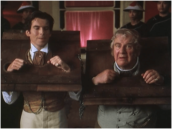 而到了1989年版的《環遊世界八十天》這段情節卻被徹底顛覆了。這部劇裏聚集了多位老牌明星,是名副其實的全明星陣容,甚至小角色都請來老戲骨客串,而且投資巨大,顯然是花了心血的作品,無論投資方還是創作人員都希望獲得成功。