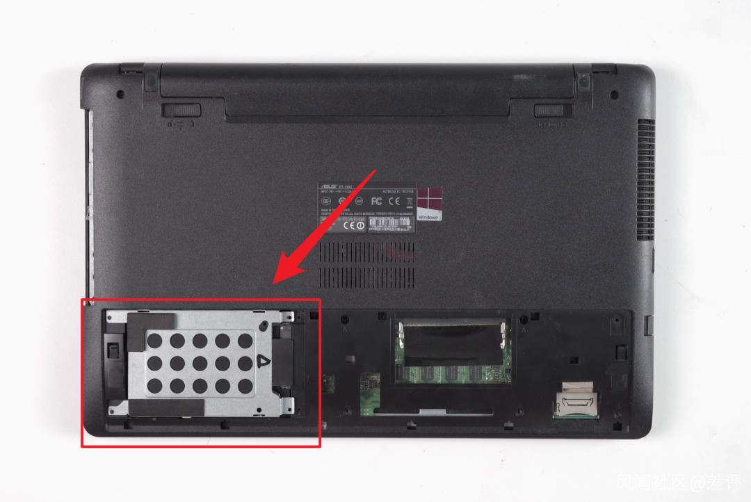 一般來説,在筆記本電腦的背面都留有專門的硬盤插槽,我們只要用螺絲刀擰下插槽周圍的螺絲,然後把蓋板取下來,就能看到插在主板上的硬盤。
