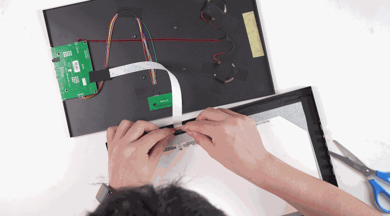 接着把驅動板上的排線插到屏幕,蓋上背板擰上螺絲,就算大功告成。