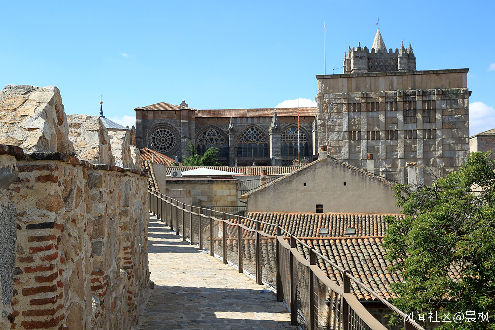 這裏有西班牙保存最完好的中世紀城牆,與摩爾人的戰爭的痕跡一直延申到這裏。實際上一直延申到法國南方,還記得圖爾之戰(普瓦蒂耶之戰)嗎?不過摩爾人沒有直接翻比利牛斯山,而是從地中海岸方向往北方掃過去,所以這裏的戰線就穩定在Avila附近,以後基督徒從這裏反攻。Avila的城牆高大厚實,但這裏其實沒打過仗。