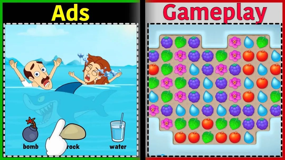 另外,廣告展示內容與遊戲真實玩法的相關性,也是海外投放尤其需要注意的一點。早在2020年9月,英國廣告標準局就曾判定《夢幻花園》和《夢幻家園》兩款遊戲涉嫌投放“誤導式廣告”。廣告中展示的益智謎題,與它實際採用的三消玩法並無關係。英國隨即禁止了這幾條廣告的投放。先例在前,海外廣告投放商們多少會忌憚各國的廣告審核機構。就算要在廣告中展示玩法,也會盡量避免過強的引導性。而在國內,目前還尚無相關法規做出限制。