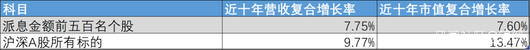 圖:派息金額前五百複合增長率 來源:Choice金融客户端