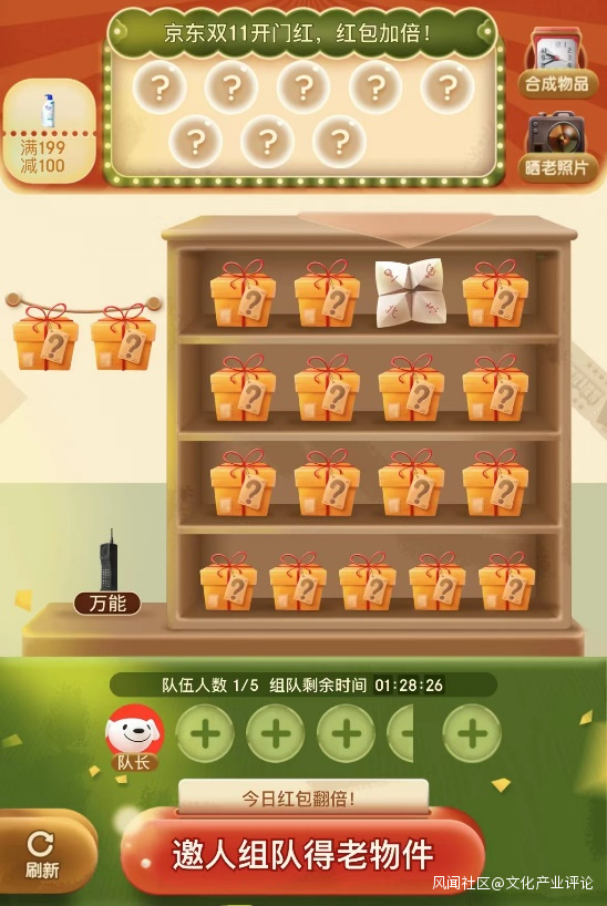 裂變式營銷在雙十一還有更多任務型玩法。如淘寶、京東早先就推出“分享可得券”,通過分享指定鏈接,多位好友點擊後可得到指定優惠券。京東今年推出2022雙11紅包裂變新玩法——每天領紅包做任務,邀請1人即可額外領取1個裂變紅包,累計20個再領11.11元額外助力紅包。拼多多“3人成團”,多位好友通過統一鏈接拼團,獲得購買的優惠價。每逢雙十一,誰又能逃過幫朋友點點鏈接的請求呢?