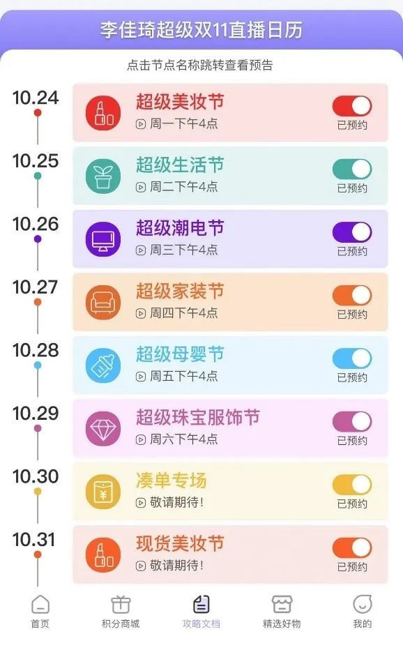 △李佳琦直播間雙11直播日曆