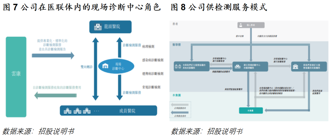 相比於診斷外包模式,醫聯體共建模式具備核心優勢:檢測平均單價更高:對於同類型檢測服務,現場診斷中心模式下的平均單價會高5-10%;前期投入金額小,毛利率更高;成本回收期更快;覆蓋範圍更廣,擴張快;現場診斷中心仍處於發展初期,增速更高。對雲康而言,向醫聯體提供診斷中心業務為雲康主要業務之一。