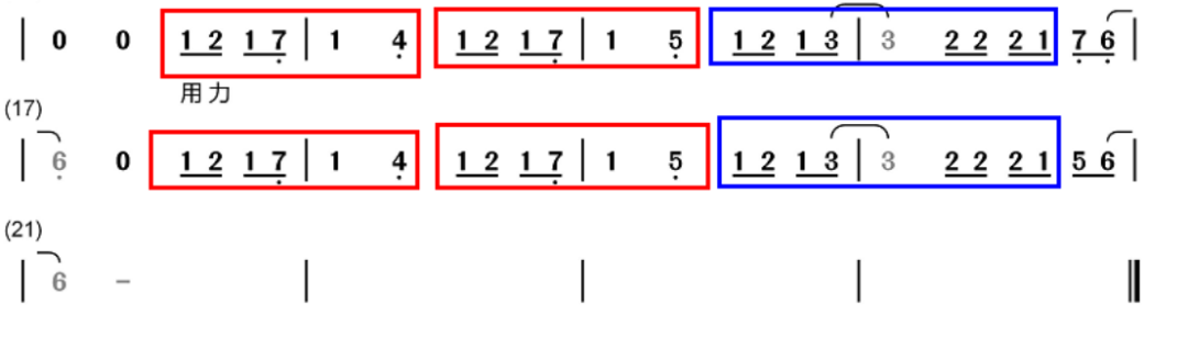 這也是全曲最難聽的一句,生硬突兀地往高音上走