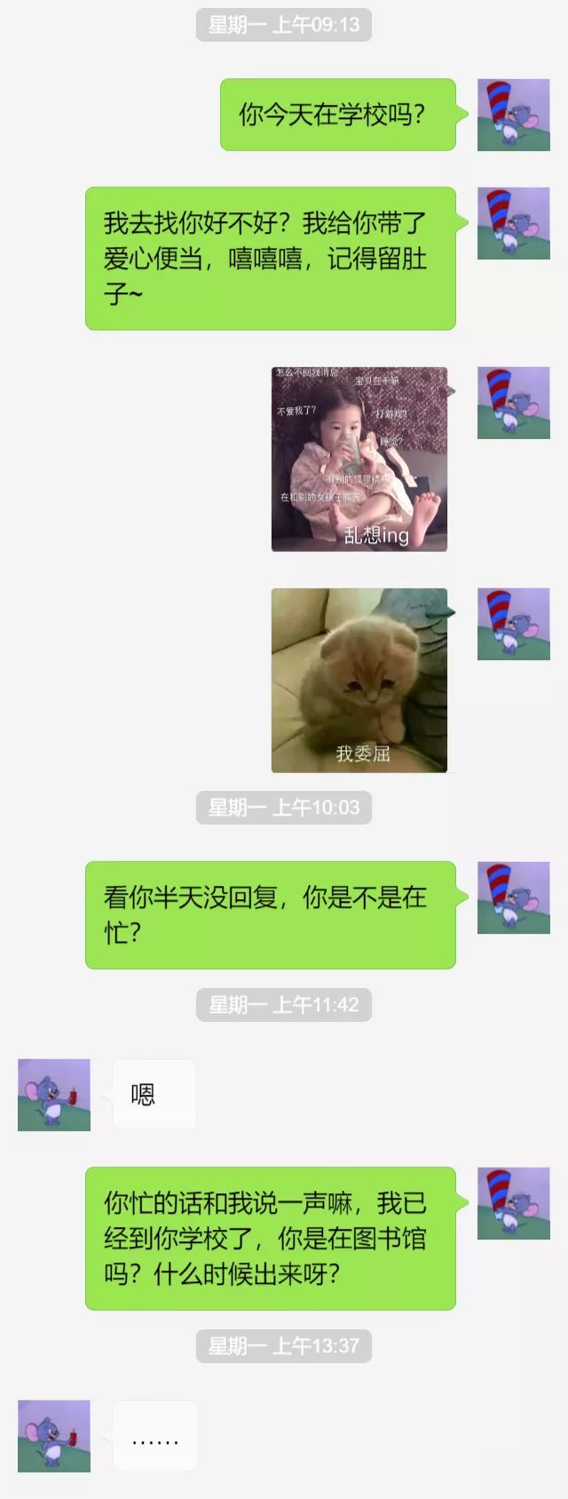 當初追我的時候天天聊微信,現在我發消息過去,要好半天他才回。約他出去玩,他也都説不感興趣。前幾天,看他朋友圈説想吃紅燒肉,我就週末特地回家做,送去他學校,他臨時又和我説有事。