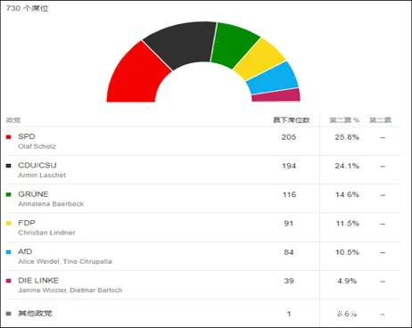 選舉前兩天,社民黨已取得了對主要競爭對手基民盟和綠黨的領先優勢,並最終以25.8%的得票率險勝基民盟,後者則以歷史最低得票率24.1%的微弱劣勢屈居第二,一度大出風頭的綠黨最終得票率為14.6%。史詩級逆轉後,朔爾茨一步登天。