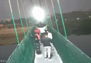 本來已經十分危險,偏偏有些年輕人還在故意晃橋。從現場的監控視頻中可以看到,一名身穿白襯衫的男子同時抓着橋兩側的網眼,猛烈地左右搖晃。越搖晃越興奮,像搞惡作劇一樣。