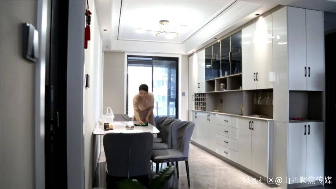 以前是在村裏的院子住,沒在這兒住着暖和,住到這以後環境比較好,綠化好而且衞生也特別乾淨,健身器材也特別齊全,離縣城也特別近。外面還有一個幼兒園,小孩送着也方便,我們這物業也特別好,物業給我們送薑茶、洗地墊,夏天的時候還送綠豆湯,特別好,搬到這以後生活提高了很多。