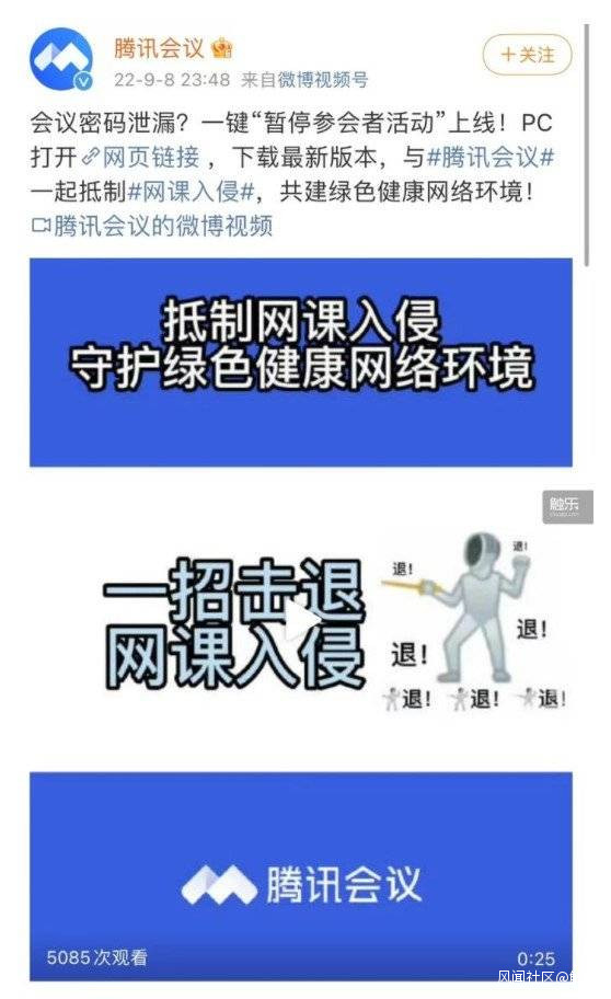 9月6日,騰訊會議官方公眾號發佈文章《共同關注!在線課堂“防破”指南》,總結了一些現有功能中的安全措施,分不同情況指導使用者如何及時阻止網課入侵。9月8日,騰訊會議發佈了新版本,在這個據稱是36小時緊急“肝”出的新版本中,多了一個“一鍵暫停參會者活動”的功能。啓動功能後,會議將被鎖定,等候室自動開啓,所有參會者的音視頻、共享屏幕、批註、聊天及其他協作權限被關閉。