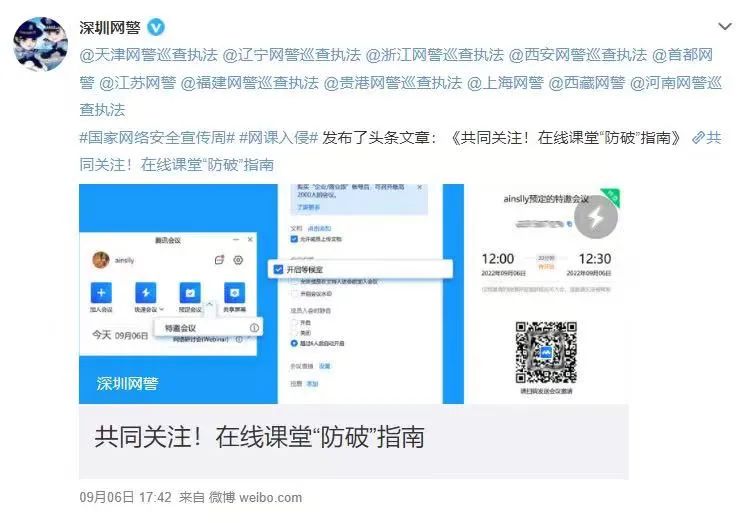 與此同時,也已經有網警發文正在關注「網課入侵」——