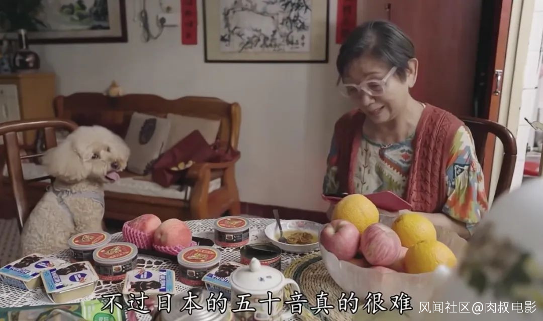 學日語學不會,她就邊拍狗狗吃飯邊含蓄暗示,連狗狗都不習慣日本水果,自己更難了。