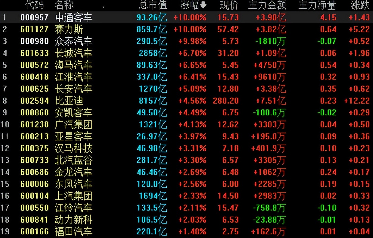 汽車產業鏈反覆活躍,中通客車、賽力斯、眾泰汽車、旭升股份、愛柯迪等多股漲停。消費股表現活躍,啤酒、旅遊、免税等板塊均大漲,西域旅遊漲超10%,步步高、王府井漲停。