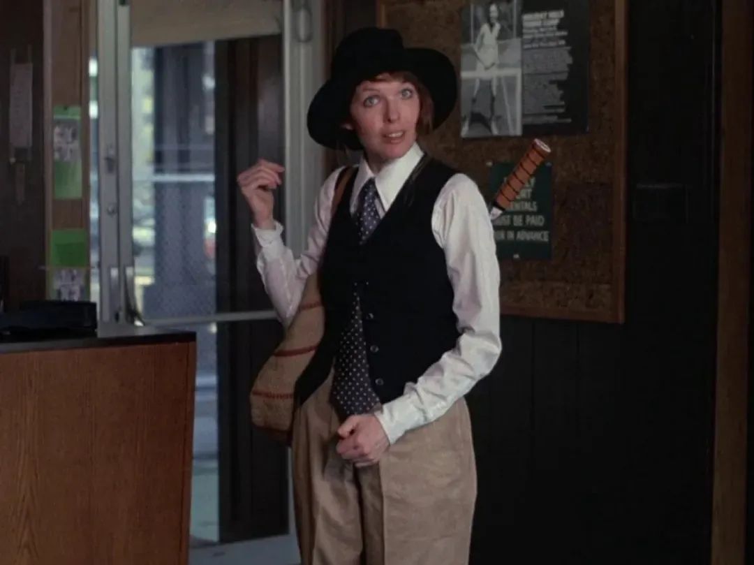 像狄迪恩在描述自己喜歡的着裝類型時説的那樣,“寬大的毛衣、長褲,寬鬆隨意的長裙,舒適的鞋。”
