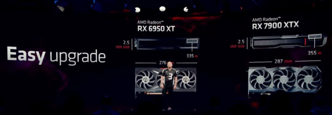 而且 AMD 還特意展示了顯卡的尺寸控制得當,**升級顯卡其實很簡單,**機箱電源啥的都不用換,即插即用。