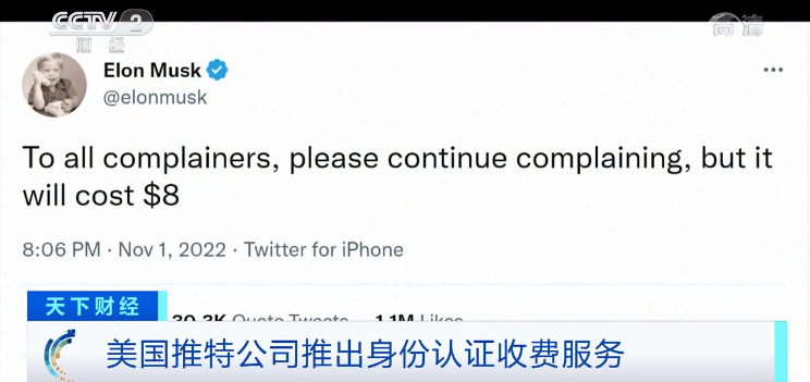 據報道,推特過去是根據認證通過的個人資料才會給用户加“藍V”,但這一過程不會收費。