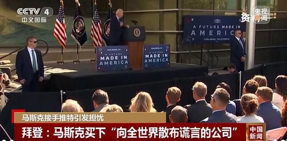 美國總統拜登在談到馬斯克收購推特一事時説,馬斯克買下了一個在世界各地散播謊言的社交媒體平台。