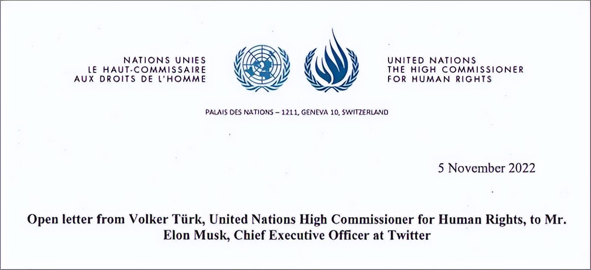 另外,聯合國人權事務高級專員蒂爾剋星期六(11月5日)呼籲全球首富馬斯克,在社交平台推特保障人權。