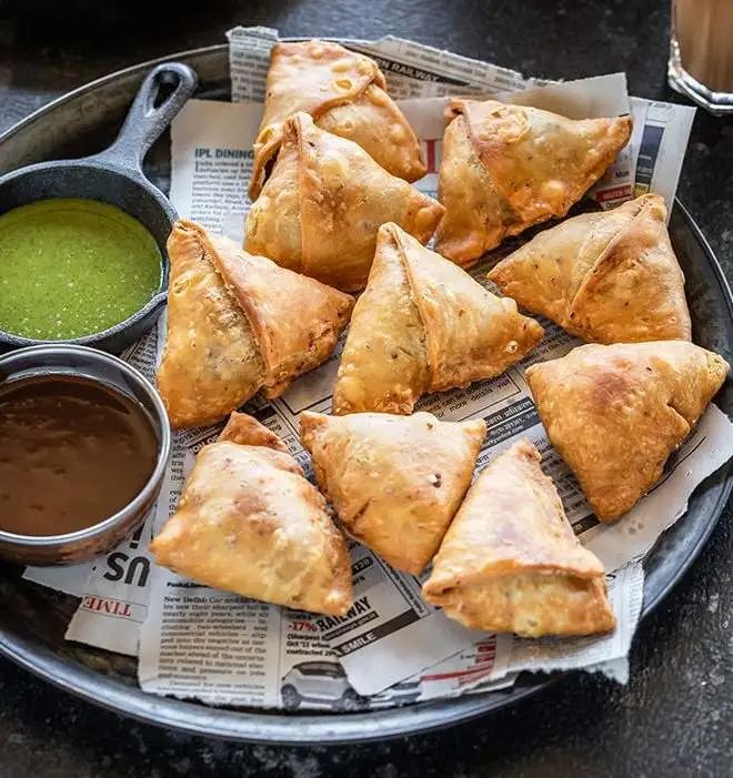 一種油炸點心,通常譯作咖喱角。裏面主要是用香辛料調味的土豆泥、青豆、洋葱、辣椒等食材,配薄荷醬或酸甜醬蘸食。印度當地的咖哩角一般為素食,也有的會加肉碎代替部分土豆泥。