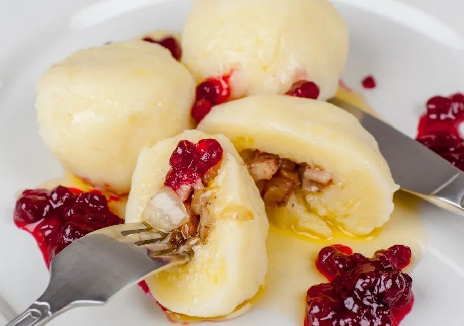 餡料可以大致分成土豆泥芝士餡、肉餡和水果餡三種,肉餡比較特別,是把煮熟的肉用絞肉機攪成肉鬆後做成餡料,非常細膩。甜餃子通常搭配酸奶油和糖,鹹餃子搭配酸奶油、培根和炸洋葱。