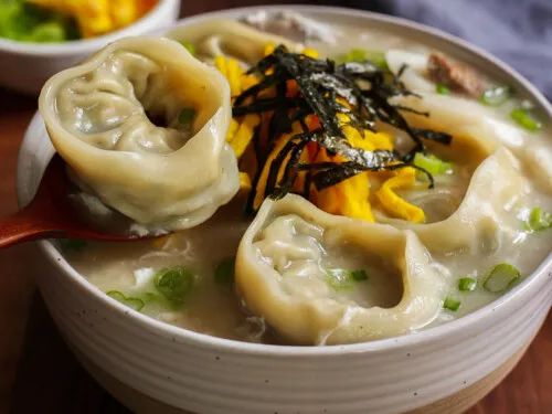 雖然長相是餃子,但韓語的Mandu是“饅頭”的意思。個頭比中國餃子大很多,所以餡料也更豐富,除了常見的肉餡和蔬菜,還會加泡菜和豆腐。