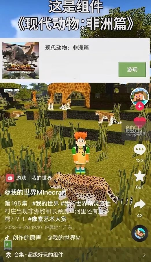 穹宇神星告訴我,平台曾經為他們的作品做過不少推文,像是《恐龍王朝》《現代動物:非洲篇》這類比較“重磅”的模組,每個都會單獨發佈推文或視頻,成員們經常在視頻號上看到自己的作品。“《非洲篇》做推廣的時候我都不知情,看到視頻還驚訝了一下。”