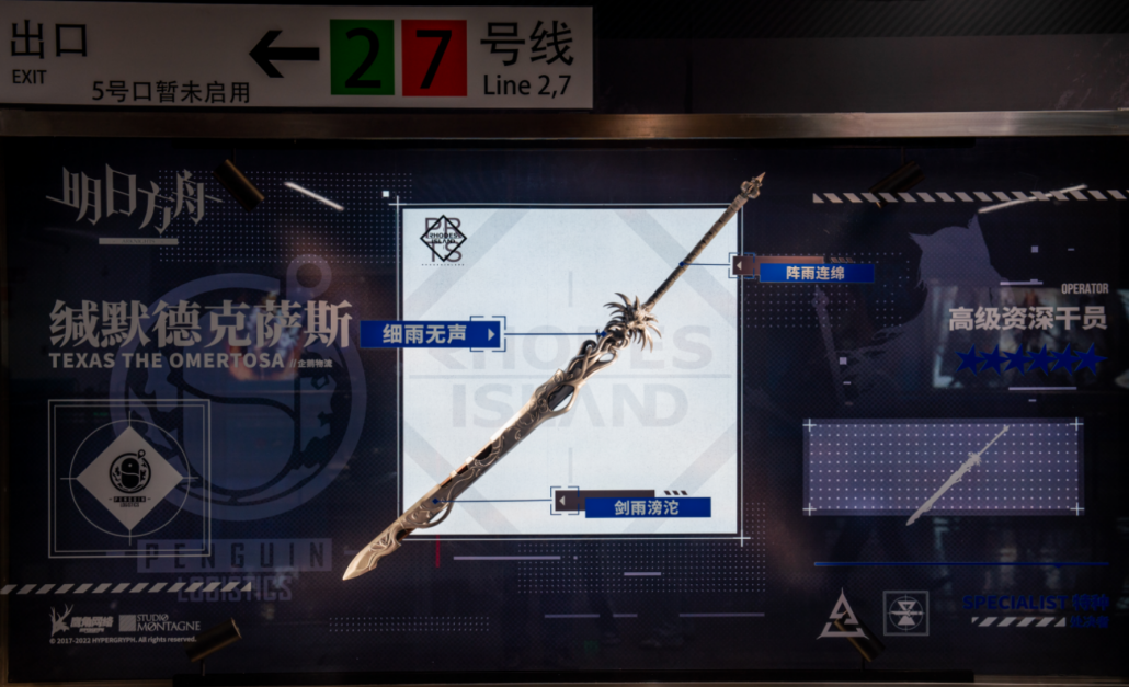 地鐵站也展示了新幹員伺夜的武器(但實際上是像槍的法杖)