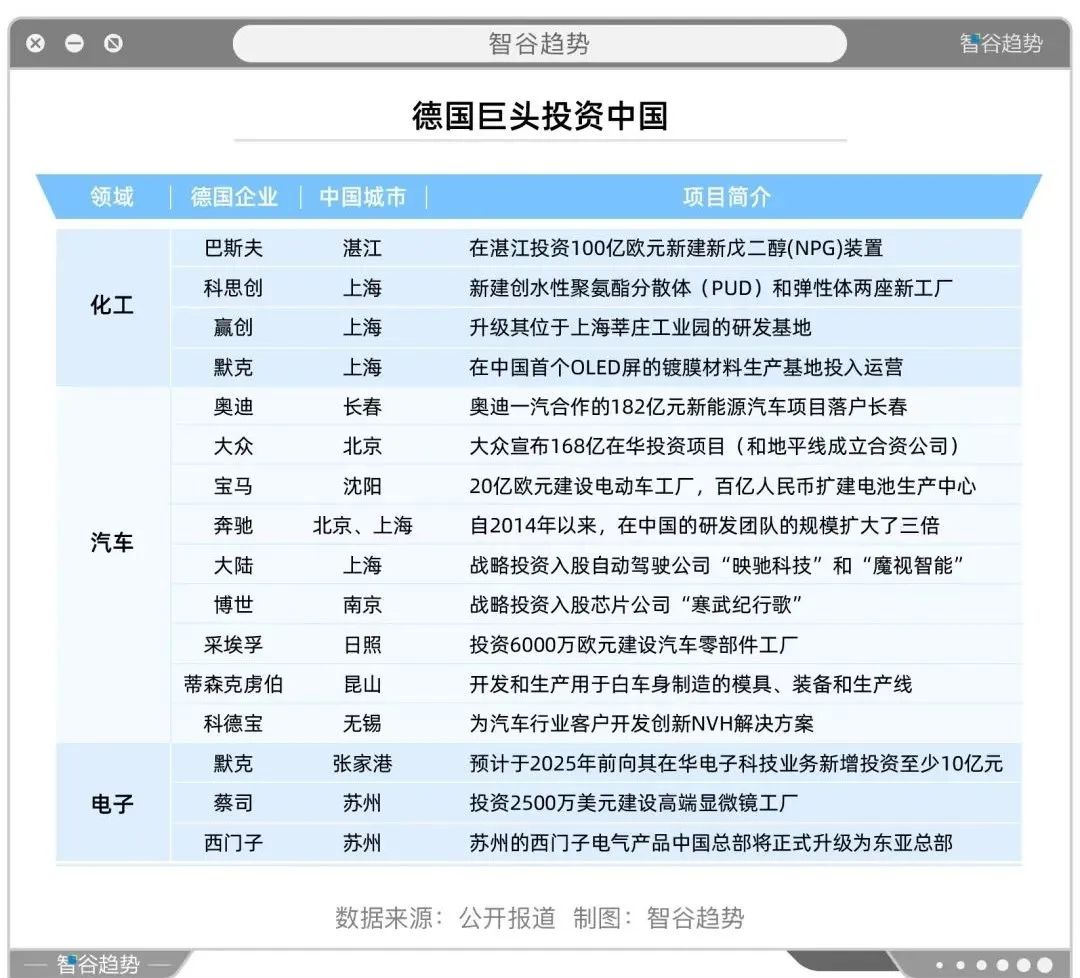 仔細看看德國在中國落地的產業,汽車、化工、電子為主,這或許不只是巧合。