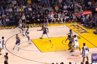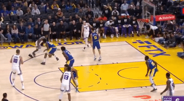 第四節科爾做了個小變化,不再堆積強側大量補位,也減少了換防,老老實實人盯人。這導致國王一度追着庫裏打擋拆,企圖累垮他。