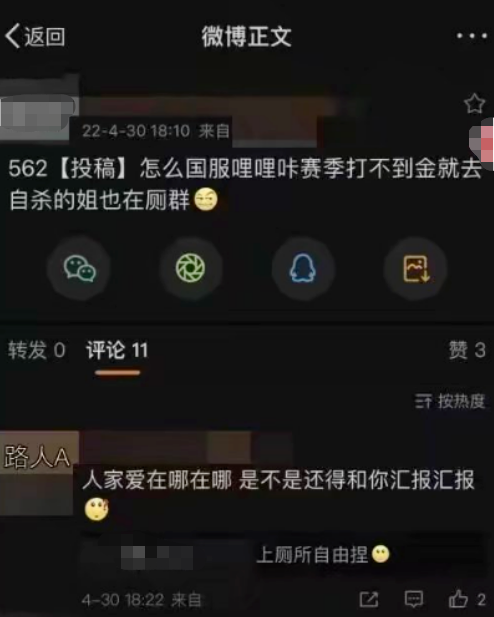 就在那位自爆者的微博下,一個小團體偷偷簇擁在一起,肆無忌憚地嘲笑逝者,將對方的死粗暴地與“心理素質不過關”掛鈎。