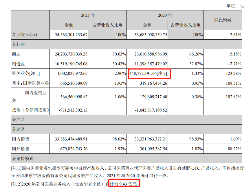 根據華東醫藥2021年報,公司2020年的醫美收入為4.49億元,而如果加上華東寧波後公司的業績則增至9.43億元。也就是説,因為華東寧波的清算,華東醫藥醫美業務慘遭“腰斬”。