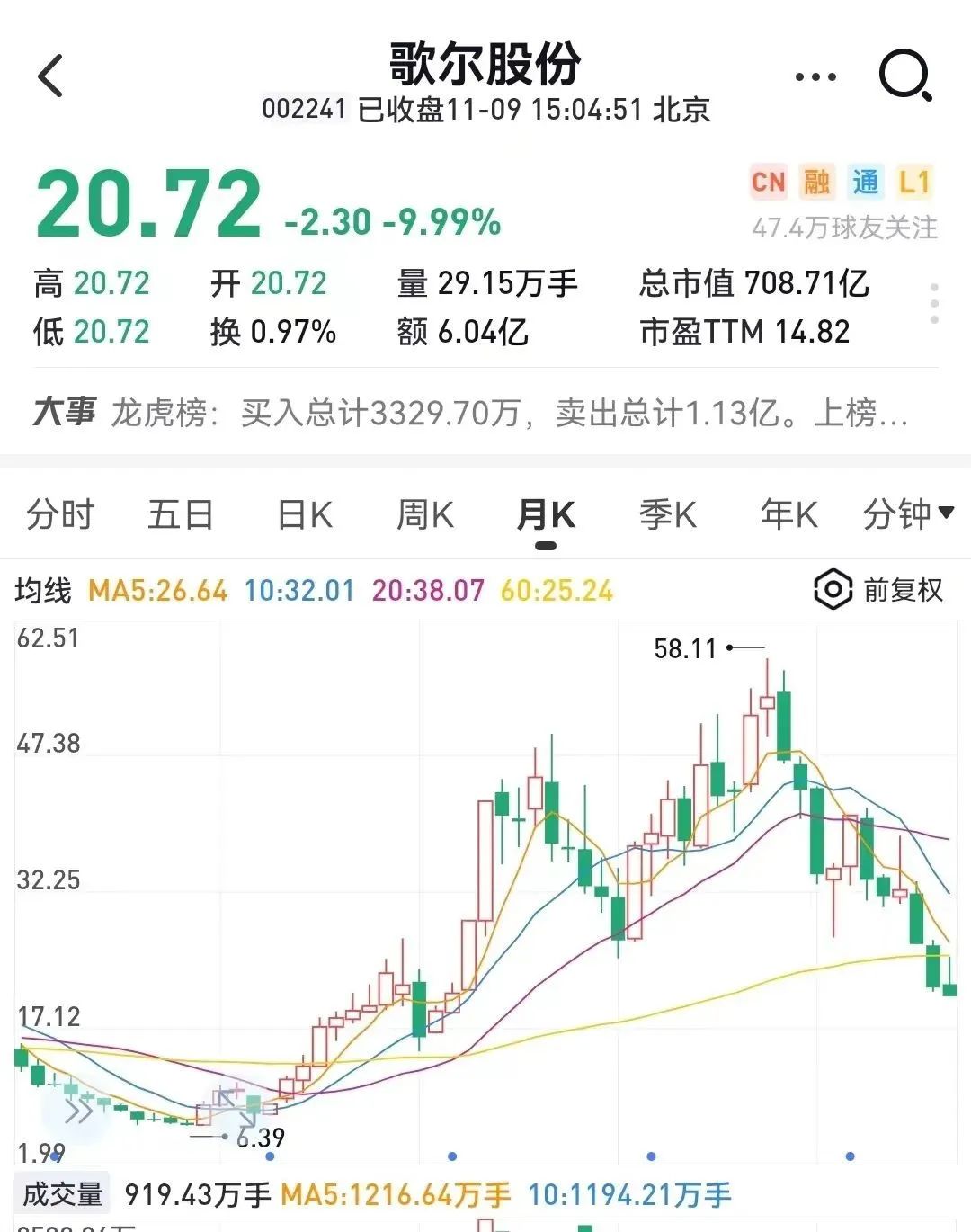 不過股民們可被嚇壞了,今天開盤,**歌爾股份一字跌停,**報20.72元/股,若從去年底58元高位算起,歌爾股份已不止是腰斬,市值更是大幅縮水近1200億。