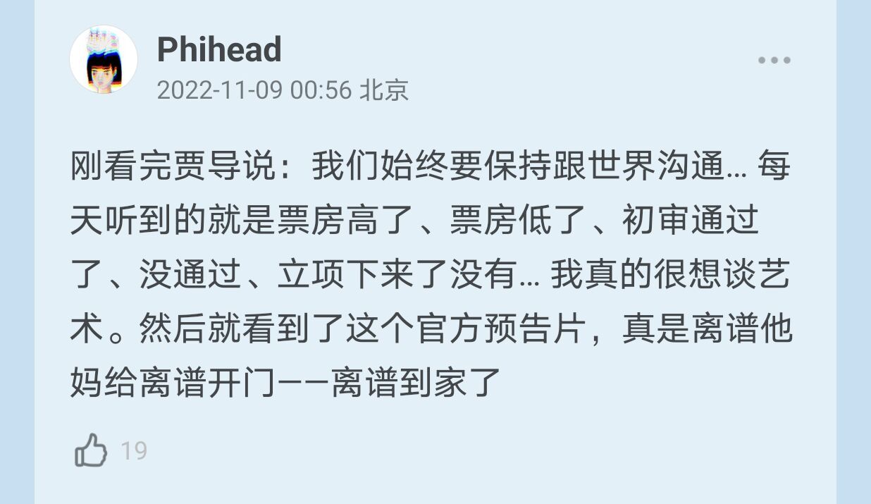 總之預告片看下來,我認為這如果是哪個大學佈置給學生的作業的初版草稿,是完全合理且能理解的。但如果是作為一個要在星期五雙十一全國上映的影片,成片的質量還是和這個預告片差不多的,那的確是如那些大V説的,這就是一個徹徹底底的災難。