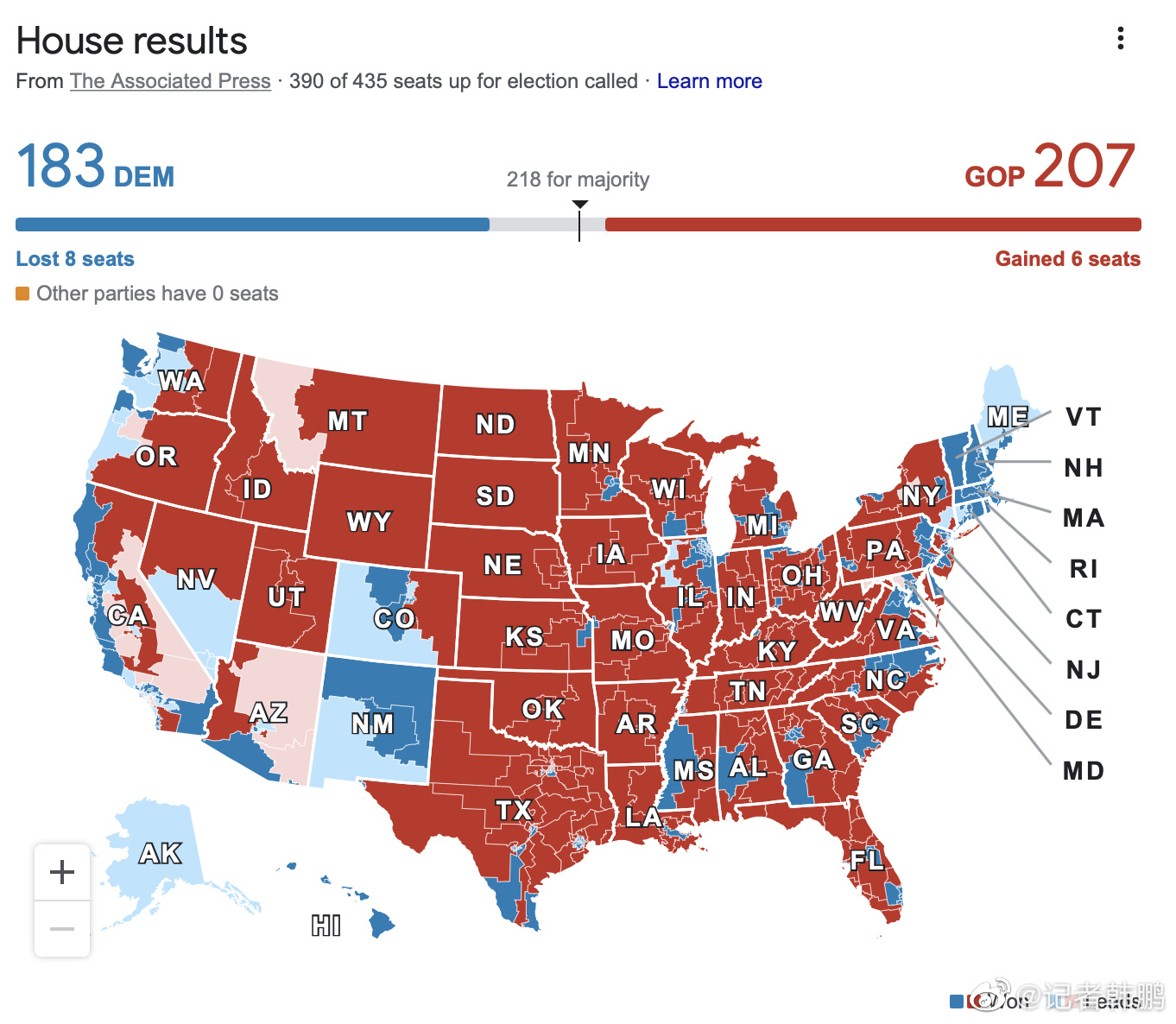 但最新計票結果是,“紅色浪潮”沒有出現,兩黨平分秋色!如圖。目前,兩黨誰能控制國會,捏住美國政府的錢袋子,仍是未知數。